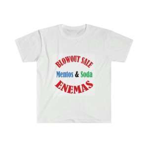 The Blowout Sale – Mentos & Soda Enemas graphic is one of our stupid funny designs that really brings a smile to people’s faces. Save huge, save now on the blowout sale of the century! Get our Mentos & Soda Enemas and you’ll never be the same. Buy this funny merch now!