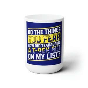 Funny Premium Coffee Mug 15 oz – Do the Things You Fear. How Did Teabagging a T-Rex Get On My List?$16.66 -