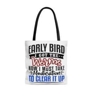Early Bird I Got the Worms Now I Must Take Medication to Clear It Up AOP Tote BagPrice range: $18.60 through $24.23 -