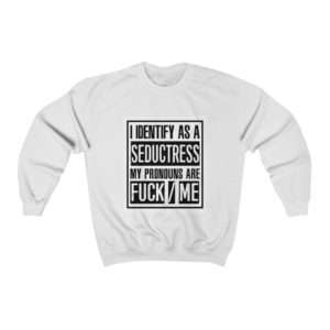 The I Identify As A Seductress. My Pronouns Are F*CK / ME graphic is one of our funny jokes on merchandise and humorous designs that really brings a smile to people’s faces. If you want to seduce someone in no uncertain terms then this is for you!