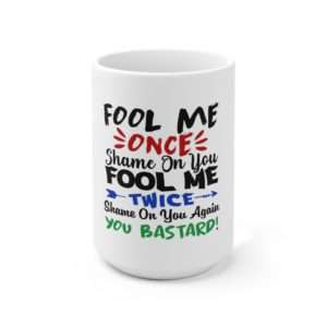 Fool Me Once Shame on You. Fool Me Twice Shame on You Again You Bastard Ceramic Mug 15oz