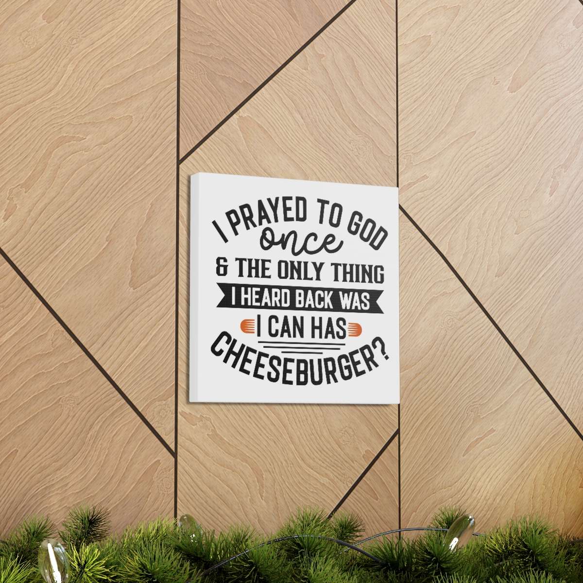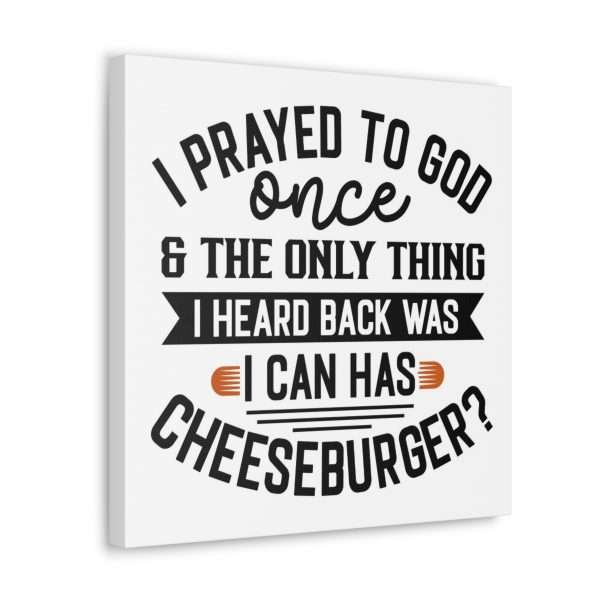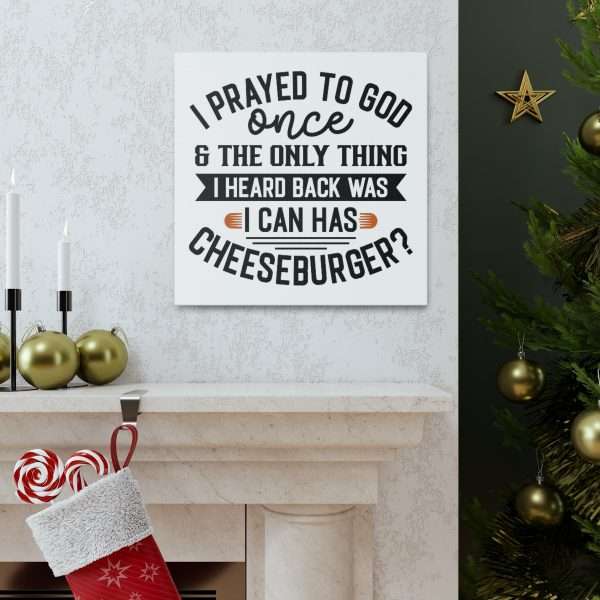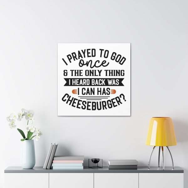 Uplift any room’s decor with I Prayed to God Once & the Only Thing I Heard Back Was: I Can Has Cheeseburger? funny canvas art that’s printed on top-quality canvas gallery wraps. Each I Prayed to God Once & the Only Thing I Heard Back Was: I Can Has Cheeseburger? gallery print is made with finely textured, artist-grade cotton substrate which helps reproduce your image in outstanding clarity and detail. Available in multiple sizes, these closed back I Prayed to God Once & the Only Thing I Heard Back Was: I Can Has Cheeseburger? canvases are built with a patented, solid support face and are excellent for indoor use. Buy one or several I Prayed to God Once & the Only Thing I Heard Back Was: I Can Has Cheeseburger? funny canvas art prints today!