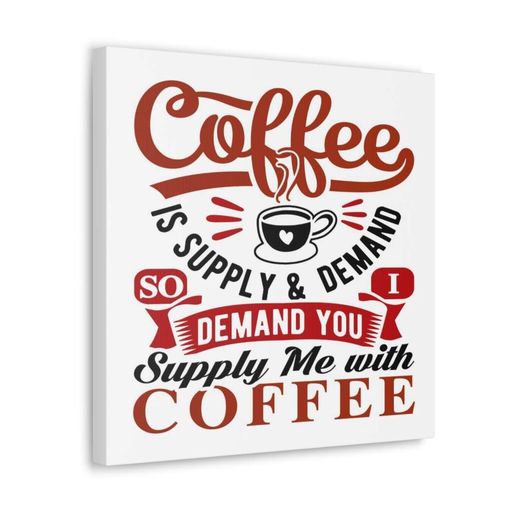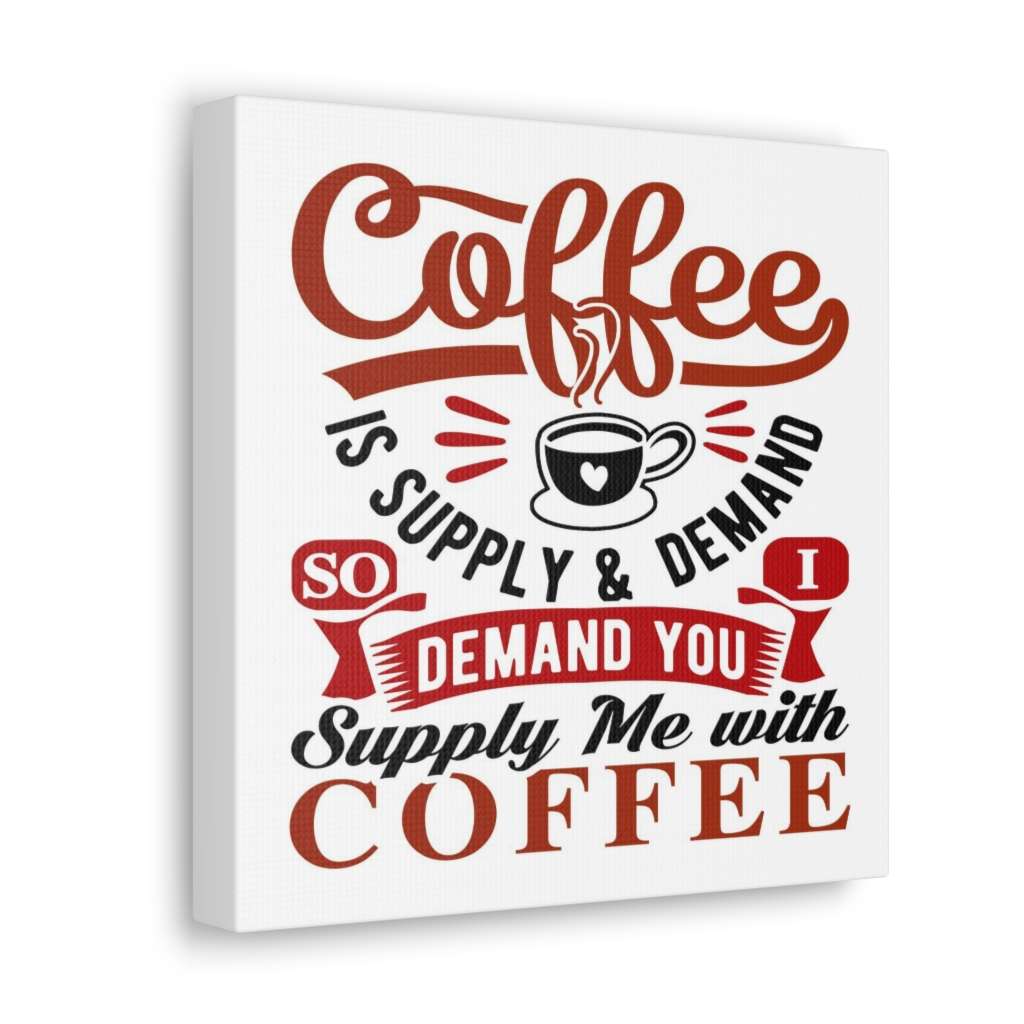 Uplift any room’s decor with Coffee Is Supply & Demand. So I Demand You Supply Me with Coffee! that’s printed on top-quality coffee lover funny canvas art gallery wraps. Each wrap is made with finely textured, artist-grade cotton substrate which helps reproduce your Coffee Is Supply & Demand. So I Demand You Supply Me with Coffee! image in outstanding clarity and detail. Available in multiple sizes, these closed back canvases are built with a patented, solid support face and are excellent for indoor use. Get your coffee on now and buy this Coffee Is Supply & Demand. So I Demand You Supply Me with Coffee! funny canvas art print!