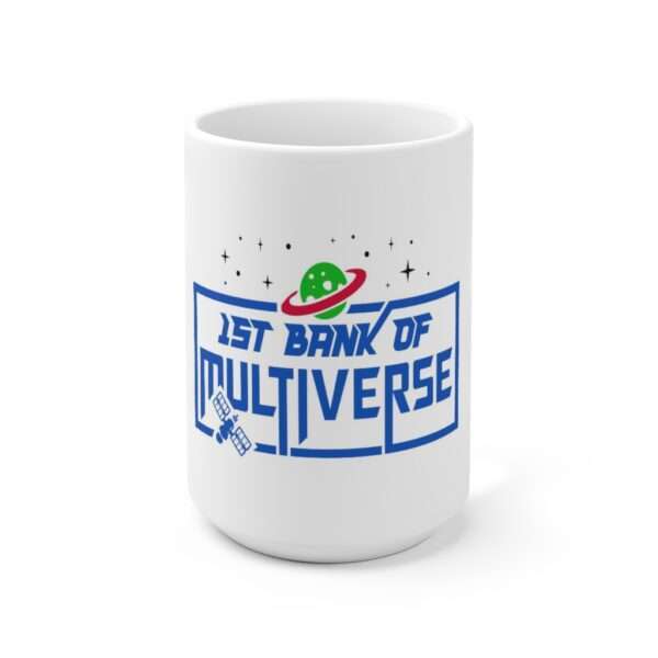 Your life and universe just became even more fun with this funny white 1st Bank ceramic mug. Your imagination is peaked with this large 15 ounce custom mug. It’s microwave-safe, and can be washed in dishwasher or easily cleaned with a mild detergent. Buy this cool multiverse design!