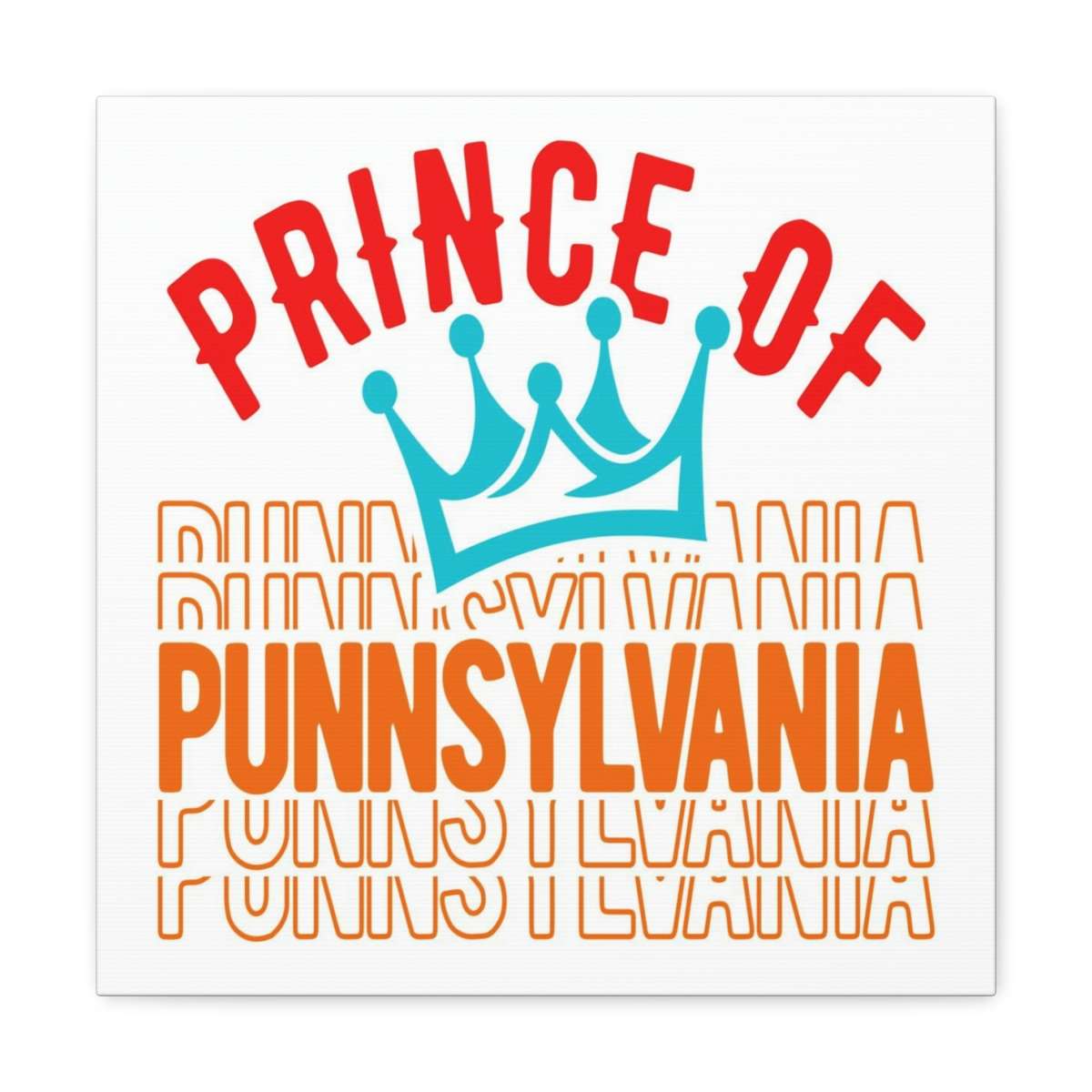 This Prince of Punnsylvania funny canvas art print is a wonderful addition to a room in which you’d like to add some humor and color! Our premium Prince of Punnsylvania funny canvas art is created from an artist-grade finely textured cotton substrate that shows off this humorous design with its ultimate vibrancy, detail and clarity.