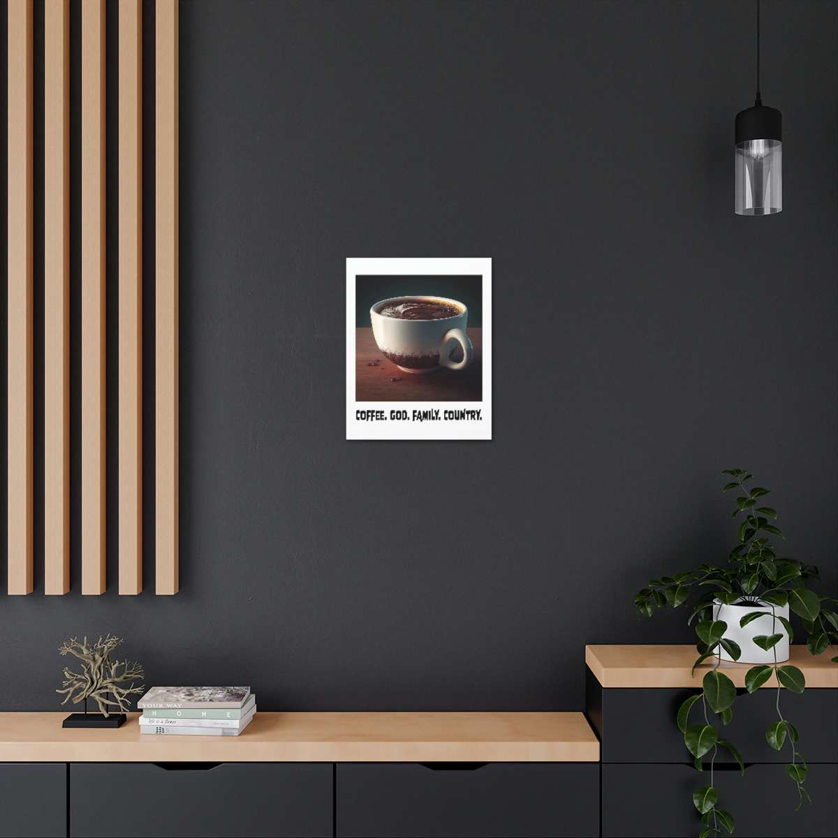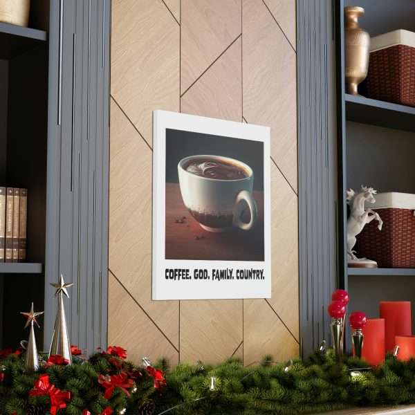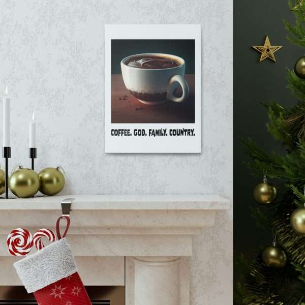 This funny Coffee God Family Country gallery print is a wonderful addition to a room in which you’d like to add some humor and color! Our premium Coffee God Family Country canvas print is created from an artist-grade finely textured cotton substrate that shows off this funny design with its ultimate vibrancy, detail and clarity. Buy this humorous Coffee God Family Country gallery print wrap now!