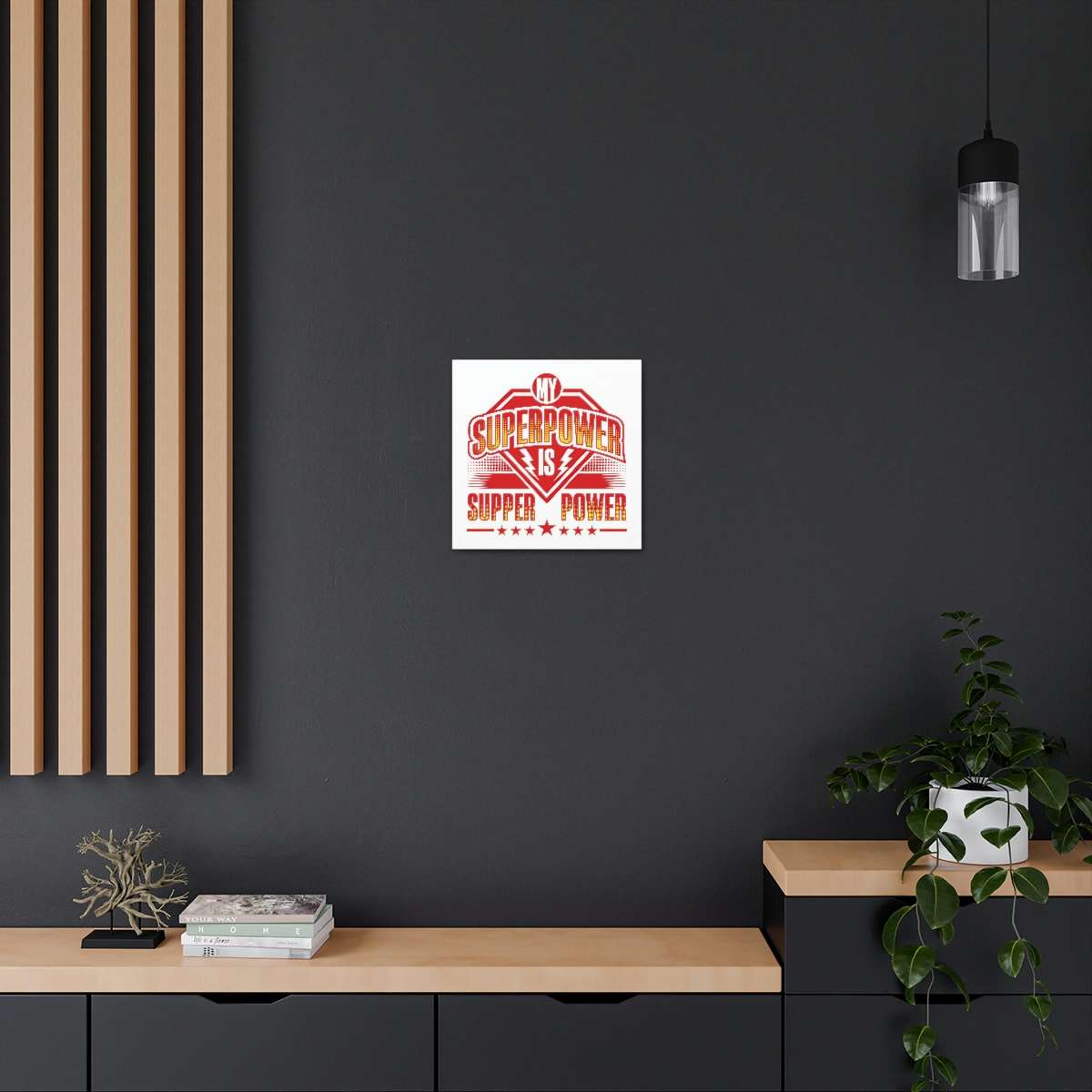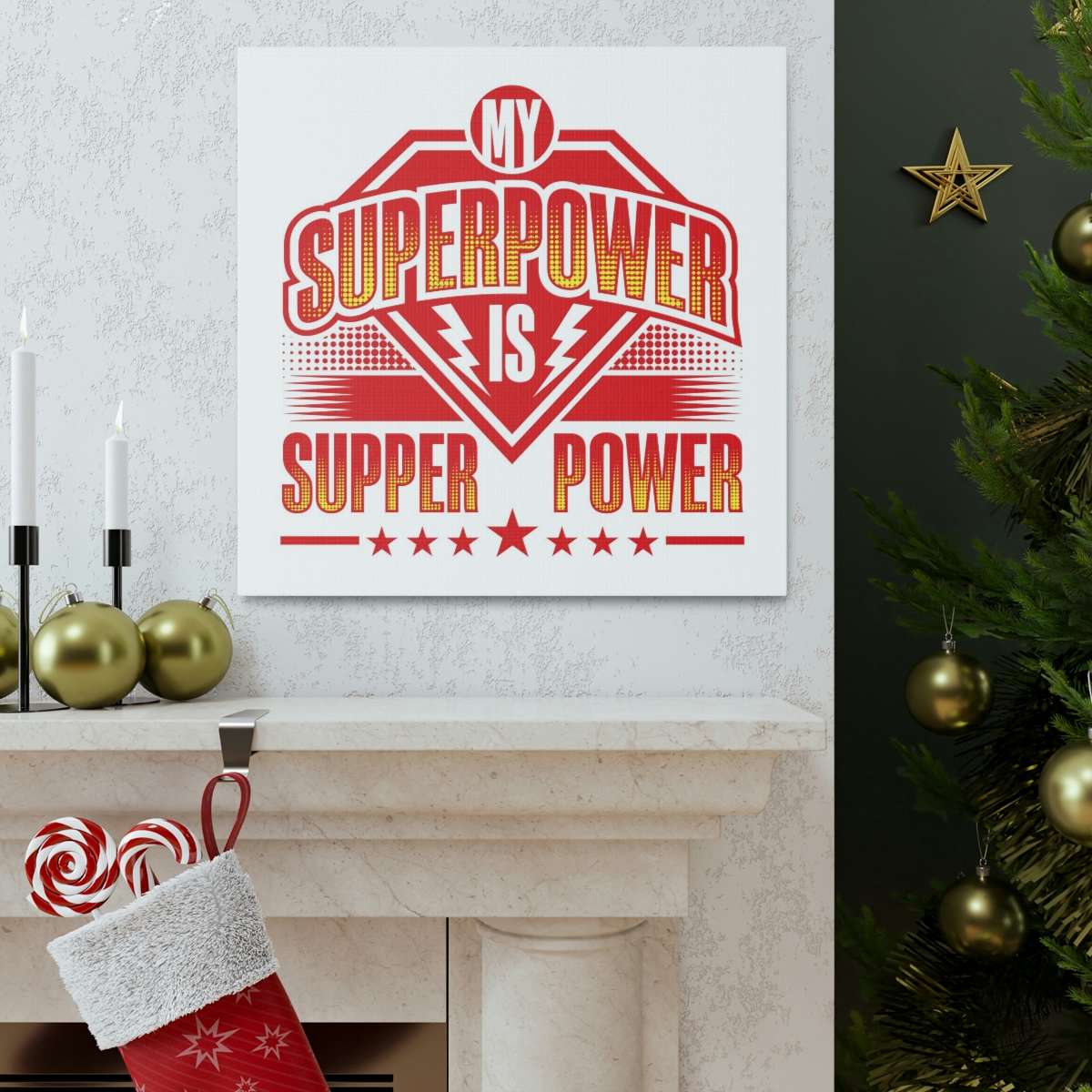 This My Superpower Is Supper Power humorous gallery print is a wonderful addition to a room in which you’d like to add some humor and color! Our premium My Superpower Is Supper Power canvas print is created from an artist-grade finely textured cotton substrate that shows off this funny design with its ultimate vibrancy, detail and clarity. Buy this humorous My Superpower Is Supper Power gallery print wrap now!