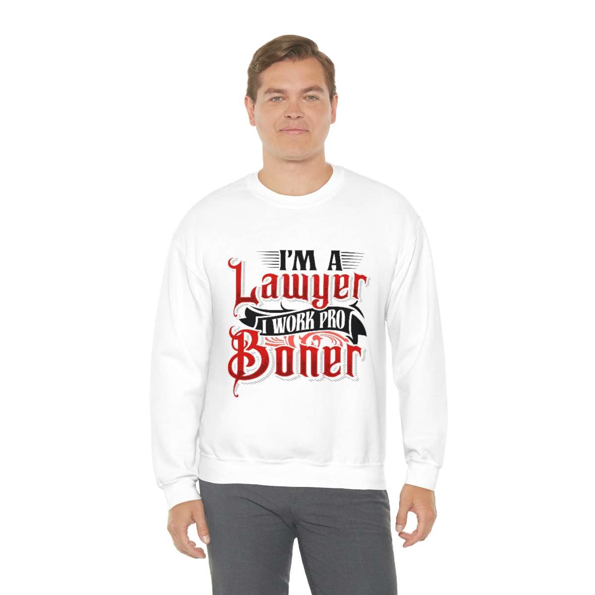 Great for any casual occasion, the funny I’m a Lawyer I Work Pro Boner unisex heavy blend crewneck sweatshirt is pure comfort. Our sweatshirts are made from cotton and polyester. These fabrics help the funny I’m a Lawyer I Work Pro Boner design to stand out on the garment. The collar of the I’m a Lawyer I Work Pro Boner hilarious crewneck sweatshirt is ribbed knit, enabling it to maintain its shape one washing after another. These funny sweatshirts don’t contain any itchy side-seams. Buy a I’m a Lawyer I Work Pro Boner funny unisex heavy blend crewneck sweatshirt today!