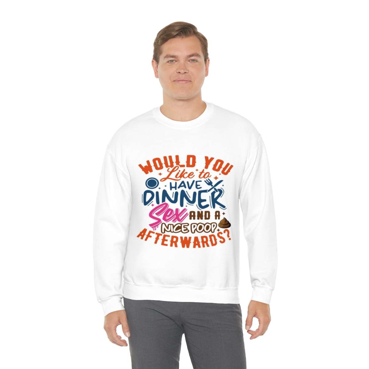 Buy a Would You Like to Have Dinner, Sex and a Nice Poop Afterwards funny unisex heavy blend crewneck sweatshirt today!