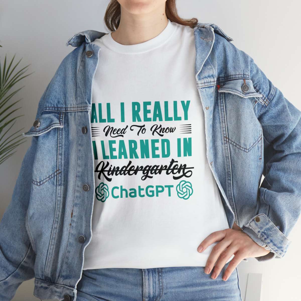 Buy a funny unisex heavy cotton All I Really Need to Know I Learned in ChatGPT t-shirt today!