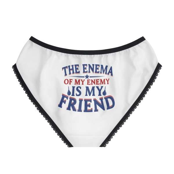 Gals, it’s time to create your unique look from head to camel toe with cute and comfy The Enema of My Enemy Is My Friend funny women’s panties! Our 2.2 oz lightweight The Enema of My Enemy Is My Friend funny women’s underwear are made of 100-percent polyester and provide the most comfort where needed in your hoo-ha area. The waistband of the panty is soft elastic with a 2-sided fleece finish to avoid pinching. These The Enema of My Enemy Is My Friend funny panties are white overall with black trim. They ship from China, so they take 2 weeks to arrive. Buy these The Enema of My Enemy Is My Friend funny women’s panties today!