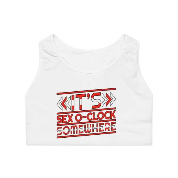 If you happen to be on the lookout for a comfortable and funny all over print It’s Sex O’Clock Somewhere sports bra that is oozing in style, then you’ve found what you’re looking for. The funny overall print is created with the dye sublimation process and will stay crisp and clean for years to come. The compression fit of the It’s Sex O’Clock Somewhere funny sports bra along with excellent support during peak activity and a double layered front means 360-degree comfort, support and style. Buy an It’s Sex O’Clock Somewhere funny sports bra today!