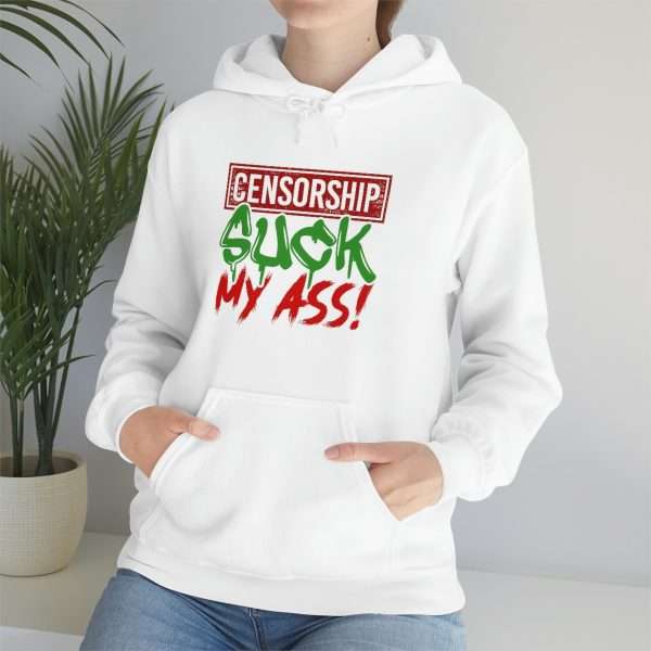 Our Censorship Suck My Ass humorous unisex heavy blend hoodie sweatshirt is one to relax in. The cotton and polyester blends of the Censorship Suck My Ass hoodie sweatshirts are thick and comfortable. The humorous Censorship Suck My Ass garments are not only warm but soft was well. The combination of materials is well-suited for vibrancy in the design. No side seams mean no itching. In front of the funny hoodie, a large kangaroo pocket hangs near the bottom. The humorous hoodie’s drawstring is the same color as the rest of the heavy blend sweatshirt. Buy a funny Censorship Suck My Ass hoodie today!