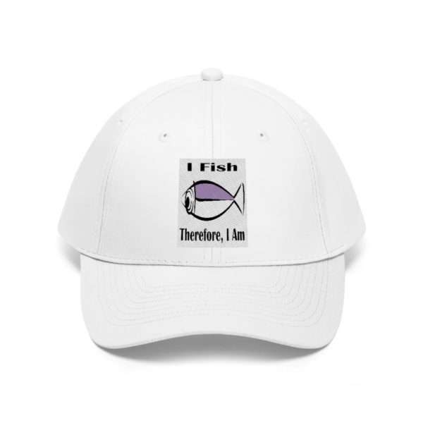 The I Fish, Therefore I Am humorous 6-panel unisex Twill Hat is one of our most popular wearable products. The humorous I Fish, Therefore I Am baseball cap is well-suited for sporting events, the wonderful outdoors, for and everyday use just bopping around town. This excellent I Fish, Therefore I Am design is 100% cotton twill and will entertain family and friends for years. The funny cap’s Buckram lining shows the embroidery well and provides structure so that the hat maintains the shape of your head. An adjustable Velcro strap makes wearing easy. Buy a I Fish, Therefore I Am funny Twill cap today!