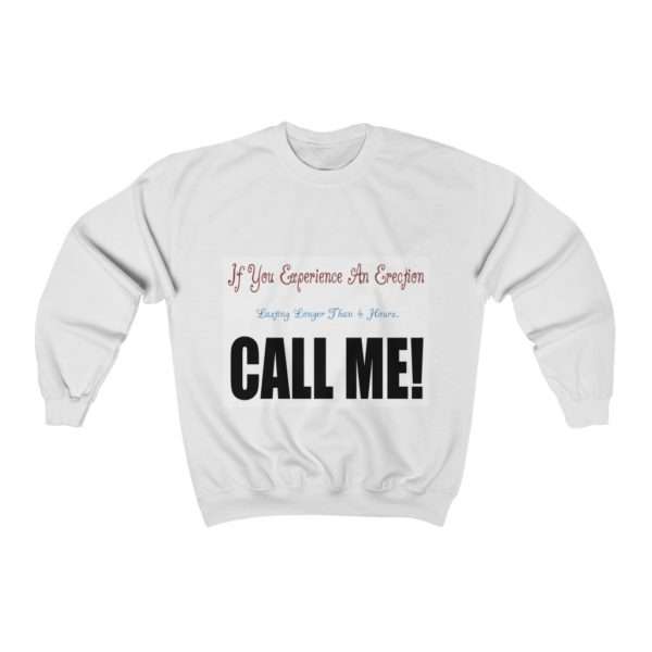 Great for any casual occasion, the humorous If You Experience An Erection unisex heavy blend crewneck sweatshirt is pure comfort. Our If You Experience An Erection sweatshirts are made from cotton and polyester. These fabrics help the design to stand out on the garment. The collar of the hilarious crewneck sweatshirt is ribbed knit, enabling it to maintain its shape one washing after another. These funny sweatshirts don’t contain any itchy side-seams. Buy a If You Experience An Erection funny unisex heavy blend crewneck sweatshirt today!
