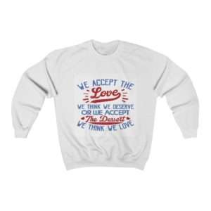 Featuring funny We Accept the Love We Think We Deserve OR We Accept the Dessert We Think We Love jokes on t-shirts, hoodies, coffee mugs, notebooks, facemasks, phone cases and more. For some people, love is a desert. For others love is a dessert. And yet for other dessert is love. If you want to give a laugh to a special someone, then buy this now!