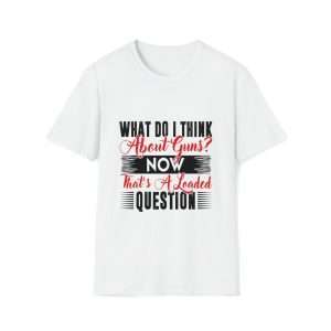 Funny Unisex Soft-Style T-Shirt – What Do I Think about Guns? Now, That’s a Loaded Question.Price range: $17.59 through $20.12 -